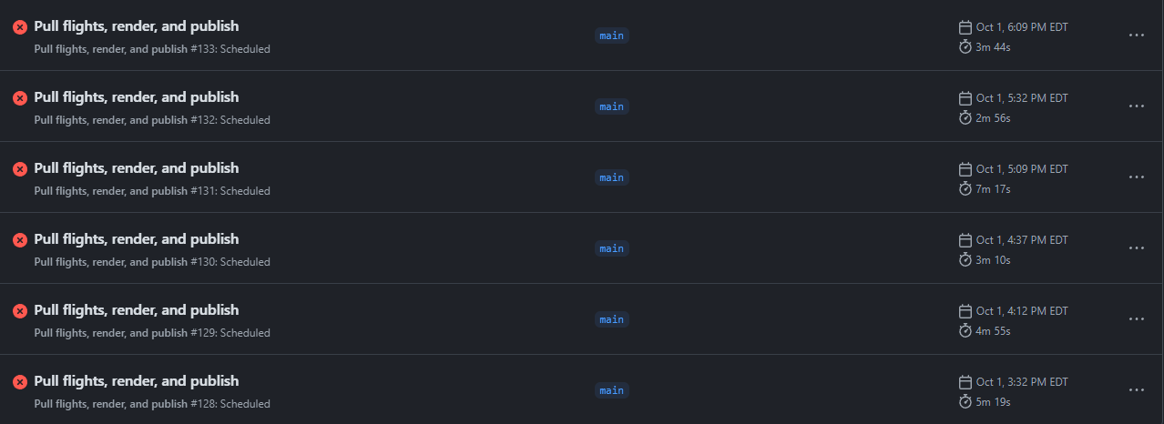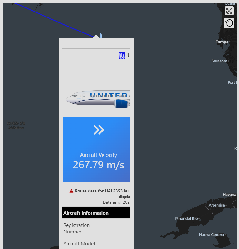 First, let’s get the data we actually want to map. We have fleet info, we have an aircraft’s state vector (which includes the aircraft’s present callsign), and we have a way to get the route information from a callsign. Let’s join these tables up together using a series of left joins. We’ll actually need to include the registration info in the data we derived from OpenSky, which only contains the icao24 address. Luckily, we have the get_registration_from_icao24()